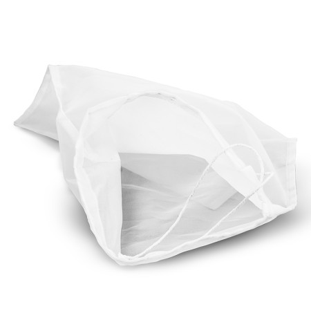 Очень плотный мешок из нейлона плотностью 200 (плотность выше чем у фильтровальных мешков) и размером 20*30 см с завязками был разработан, чтобы достичь более высокой эффективности при затирании солода, и сделать процесс фильтрации более простым. Кроме того, рассчитан на 3-4 килограмма солода и подходит для емкостей от 15 до 30 литров при варки хмеля, затирки-варки небольшого количества солода в сусловарочном котле или кастрюле и для очень тонкой фильтрации виноматериала. При варке солода мешок подвешивается на краях сусловарочного котла, чтобы мешок не касался дна. С мешком можно затирать солод без пароводяного нагрева или фальш дна. После применения ополаскивается и высушивается. Подходит для многоразового применения.